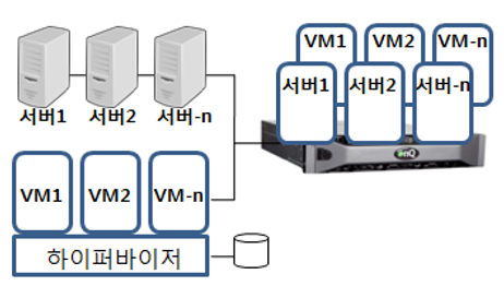 기존의 백업제품들과 온큐가 다른 점은 스케쥴링 백업 주기에 맞추어서 보호대상 서버를 통째(OS+데이터+어플리케이션)로 가상서버로 만들어둔다는 것입니다.
